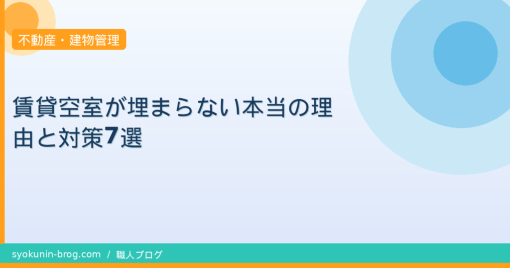 空室が続く賃貸物件は、家賃だけが原因ではありません。不動産管理18年・独立経営2年目の専門家が、空室を埋める7つの実践的対策を解説します。 -