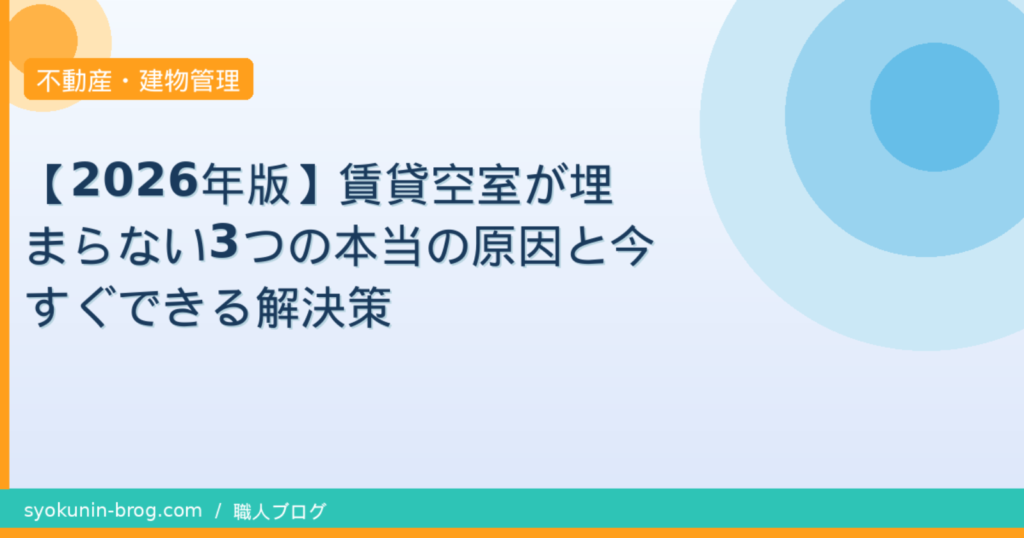 繁忙期を過ぎても空室が埋まらない…。実は原因は家賃ではありません。水回り施工15年・不動産管理18年の実務者が、2026年の今、本当に効く空室対策を原因別に解説します。 -