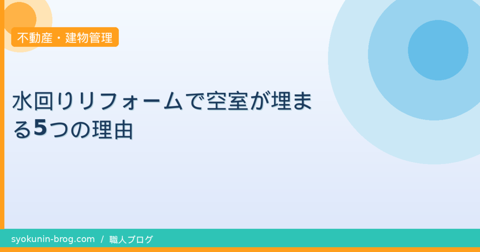 今回は、水回りリフォームが空室対策として「なぜこれほど効くのか」を5つの理由で解説し、今日からできる具体的なアクションまでお伝えします。