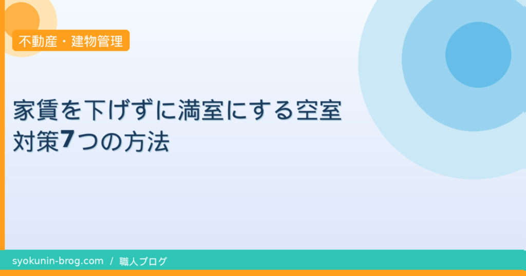 空室が長引いて悩むオーナー様へ。家賃を下げずに入居率を上げる7つの具体的な空室対策を、不動産管理18年の実務経験を持つ専門家が解説します。今日からできるアクションが満載です。 -
